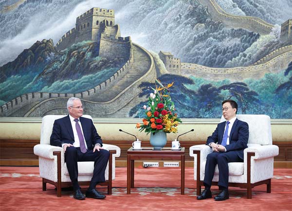 3月25日,國家副主席韓正在北京會見美國??松梨诠径麻L兼首席執(zhí)行官伍德倫。