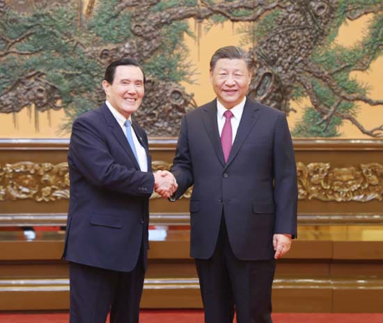 4月10日下午,中共中央總書記習(xí)近平在北京會(huì)見馬英九一行。新華社記者 鞠鵬攝