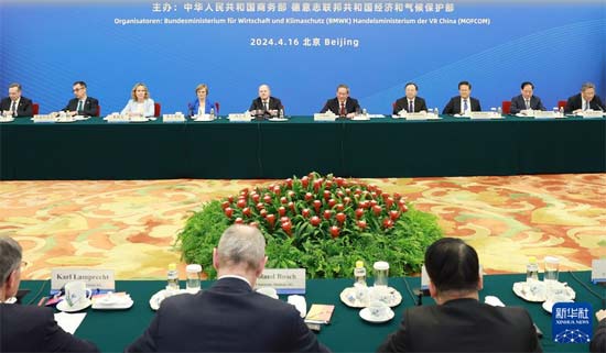 4月16日下午,國務(wù)院總理李強在北京人民大會堂和德國總理朔爾茨共同出席中德經(jīng)濟顧問委員會座談會,同與會企業(yè)家交流。