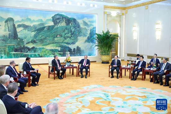 3月23日下午,國務(wù)院總理李強(qiáng)在北京人民大會(huì)堂會(huì)見來華出席中國發(fā)展高層論壇2025年年會(huì)的美國聯(lián)邦參議員戴安斯及部分美國企業(yè)界人士。