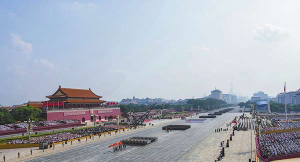 雄壯的軍樂聲中,習(xí)近平乘車沿著寬闊的長安街,依次檢閱13個徒步方隊、1個戰(zhàn)旗方隊、22個裝備方隊。受閱部隊軍容嚴(yán)整、意氣風(fēng)發(fā),鐵甲戰(zhàn)車整齊列陣、威風(fēng)凜凜。這是人民軍隊奮進(jìn)建軍百年的嶄新亮相,這是中華民族捍衛(wèi)世界和平的堅定宣示。
